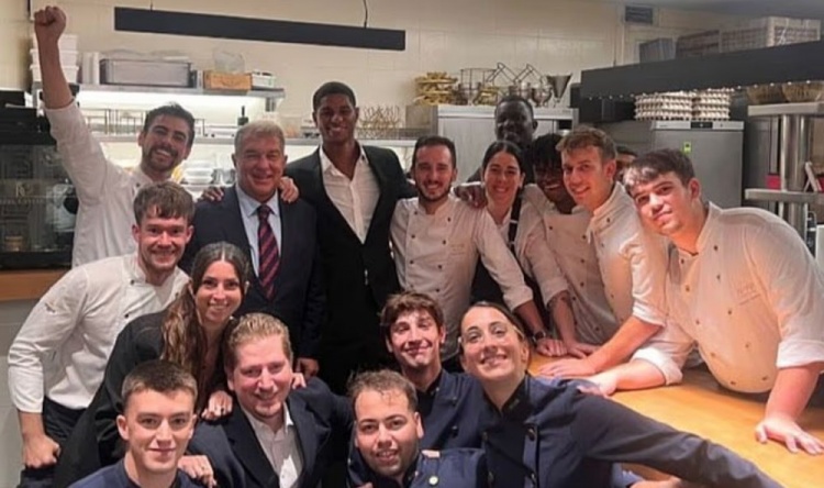 餐桌上供应了金枪鱼肚、大虾、蟹肉意面和圣帕乌豆等美食,随后还品尝了和牛和加利西亚黄牛肉,并以著名的芝士蛋糕作为甜点。晚宴结束后,拉什福德和俱乐部主席拉波尔塔与厨师和服务员合影留念,两人脸上洋溢着对新旅程的兴奋之情。