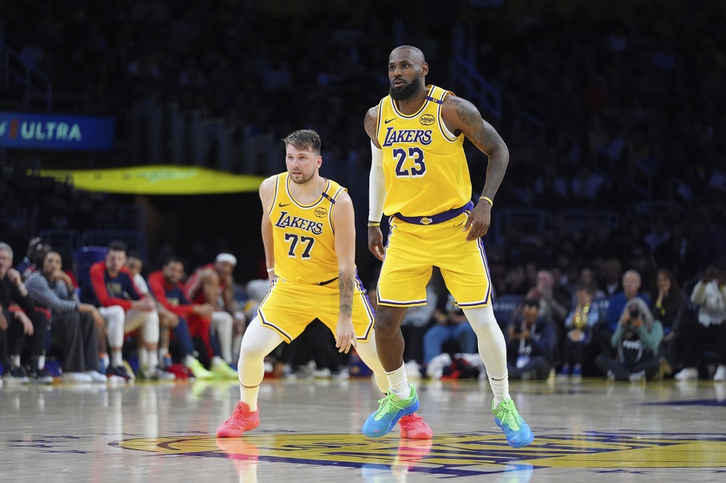 在前三节的大部分时间里,湖人一直依靠他们的超级巨星东契奇和詹姆斯。两人最终都交出了亮眼的数据:东契奇得到32分7篮板12助攻4抢断,而詹姆斯在全队最高的44分钟出场时间内贡献了31分12篮板8助攻。