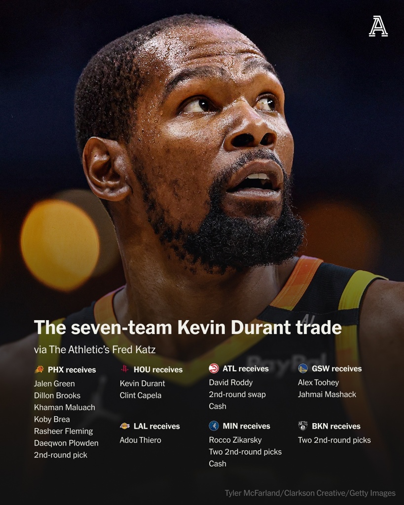 07月07日讯 ESPN名记Shams报道了,史上首次由七支球队参与交易的详细情况: