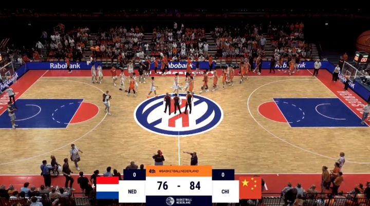 上半场结束时,中国男篮取得5分的领先优势!第三节,王俊杰、余嘉豪和高诗岩等人联手发挥,帮助中国男篮拉开分差,手握13分优势进入最后一节。末节最后阶段,荷兰男篮打出小高潮连续追分,但比赛时间所剩无几,最终中国男篮以84-76拿下了胜利。