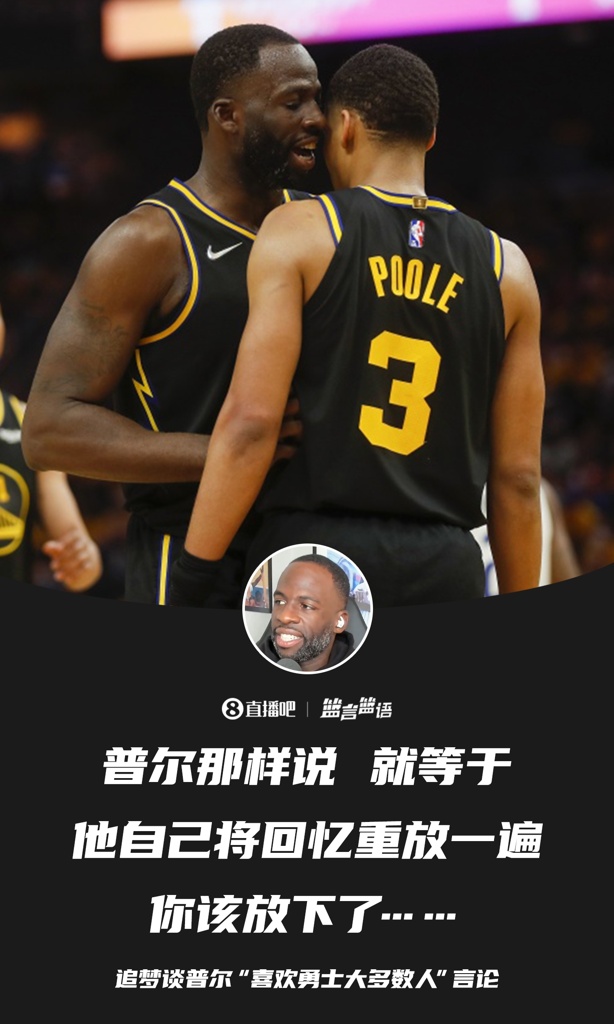 01月23日讯 在此前勇士战胜奇才的赛后,普尔在接受采访时表示,自己“很喜欢勇士的大多数人”。随后追梦转发了普尔的言论,并附上一句:“我真的抱歉。”