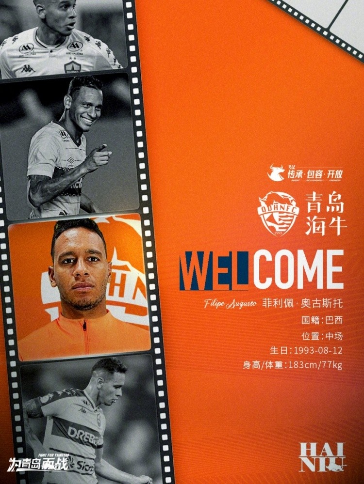 2月15日讯 昨天下午,青岛海牛足球俱乐部官宣了前巴西国奥队球员、本菲卡旧将费利佩-奥古斯托正式加盟的消息,双方签订了年限为“1+1”的工作合同。据记者孙飞报道,海牛集齐了新赛季的5名外援,今天球队将与亚泰踢热身赛。