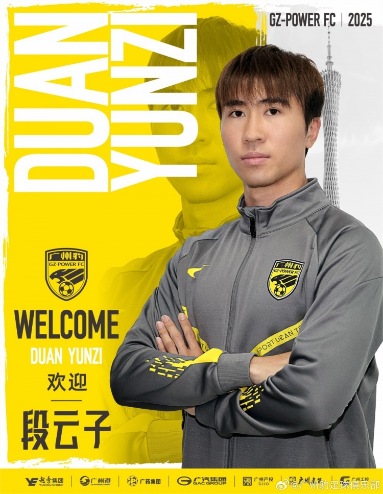2月18日讯 广州豹足球俱乐部官方宣布,段云子正式加盟球队。