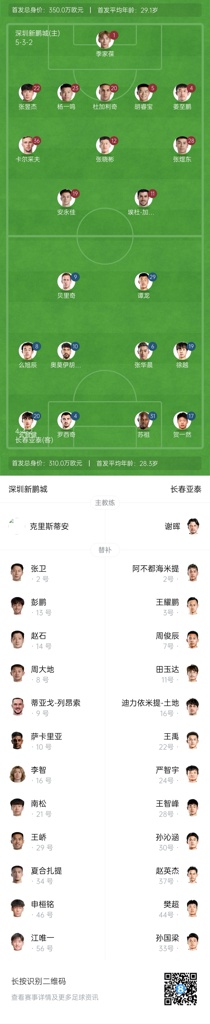04月15日讯 北京时间20:00,中超第7轮,深圳新鹏城vs长春亚泰。赛前,双方公布首发名单。