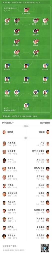 06月27日讯 世俱杯小组赛H组第3轮,萨尔茨堡红牛对阵皇马,赛前首发公布。