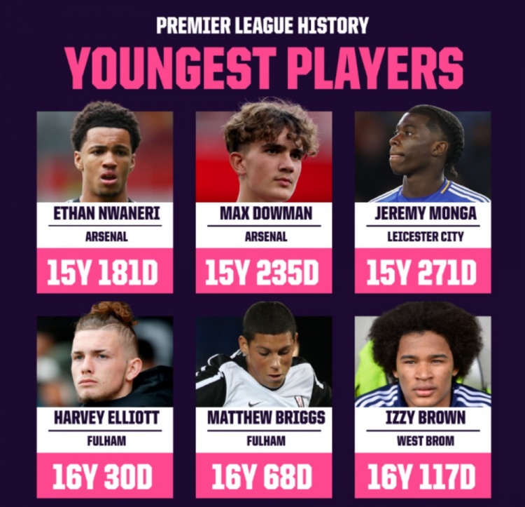 8月24日讯 英超次轮比赛,阿森纳小将道曼为球队在英超中上演首秀。不过,在英超历史上,他上演首秀的年龄仍不是最年轻,尽管他只有15岁235天。